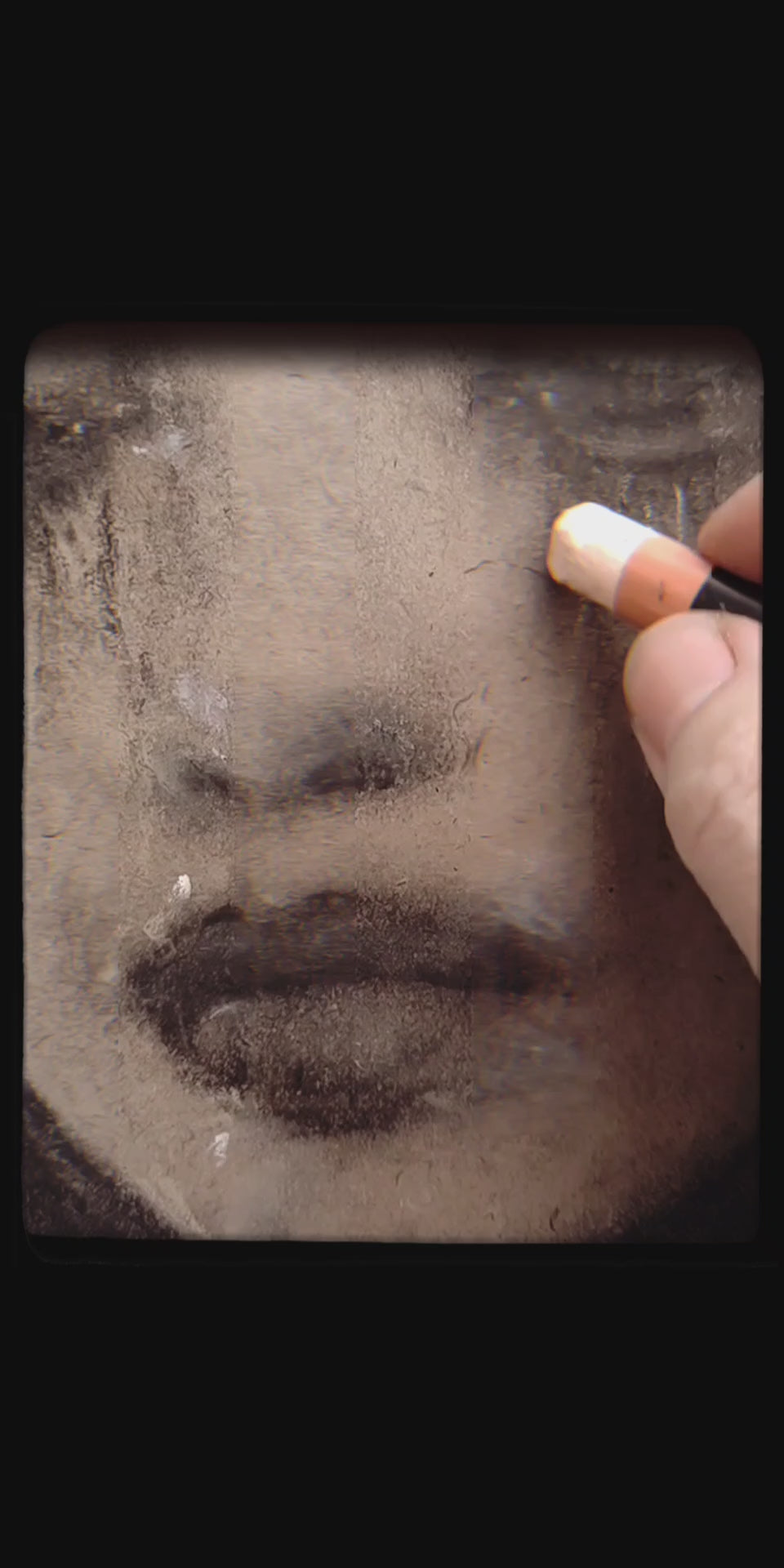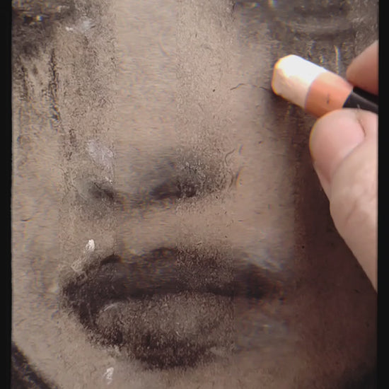 Ultimo capitolo di una serie intensa e profondamente poetica, Don't say a word è il ritratto delicato e potente di una bambina colta in un momento sospeso, intimo, silenzioso. Eseguito con carboncino, matita e sanguigna su carta nepalese fatta a mano, l'opera unisce la matericità del supporto naturale all’eleganza del tratto, in una sintesi visiva che parla di introspezione e riflessione.