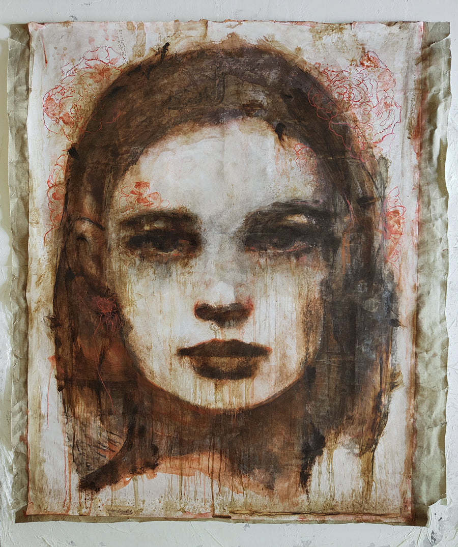 Ritratto in Rosso, dipinto su stampa da disegno originale, 120x100cm